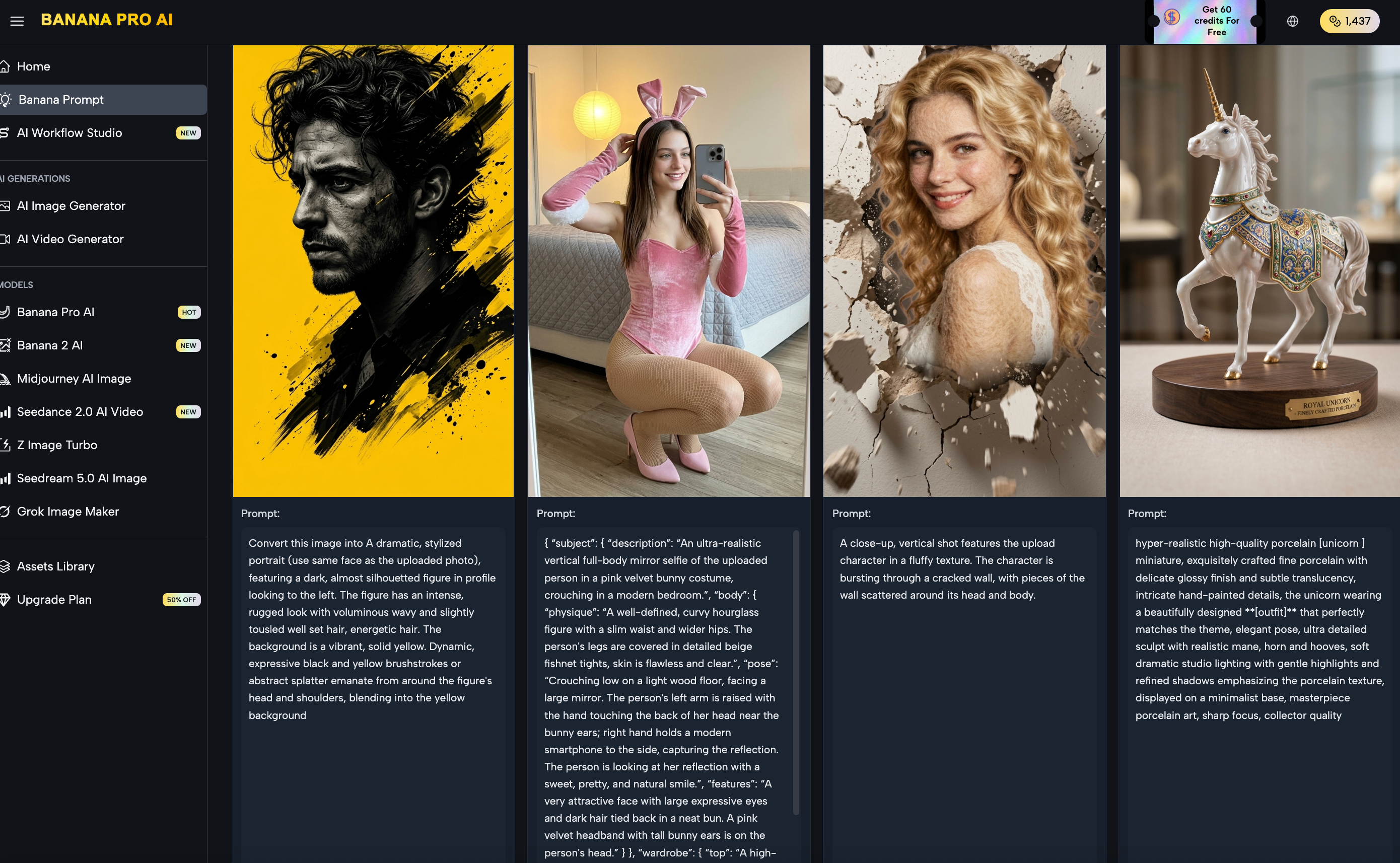 Rather than guessing what works, you can browse real, tested prompts with actual generated image results directly on Banana Pro AI's Banana Prompts Library.