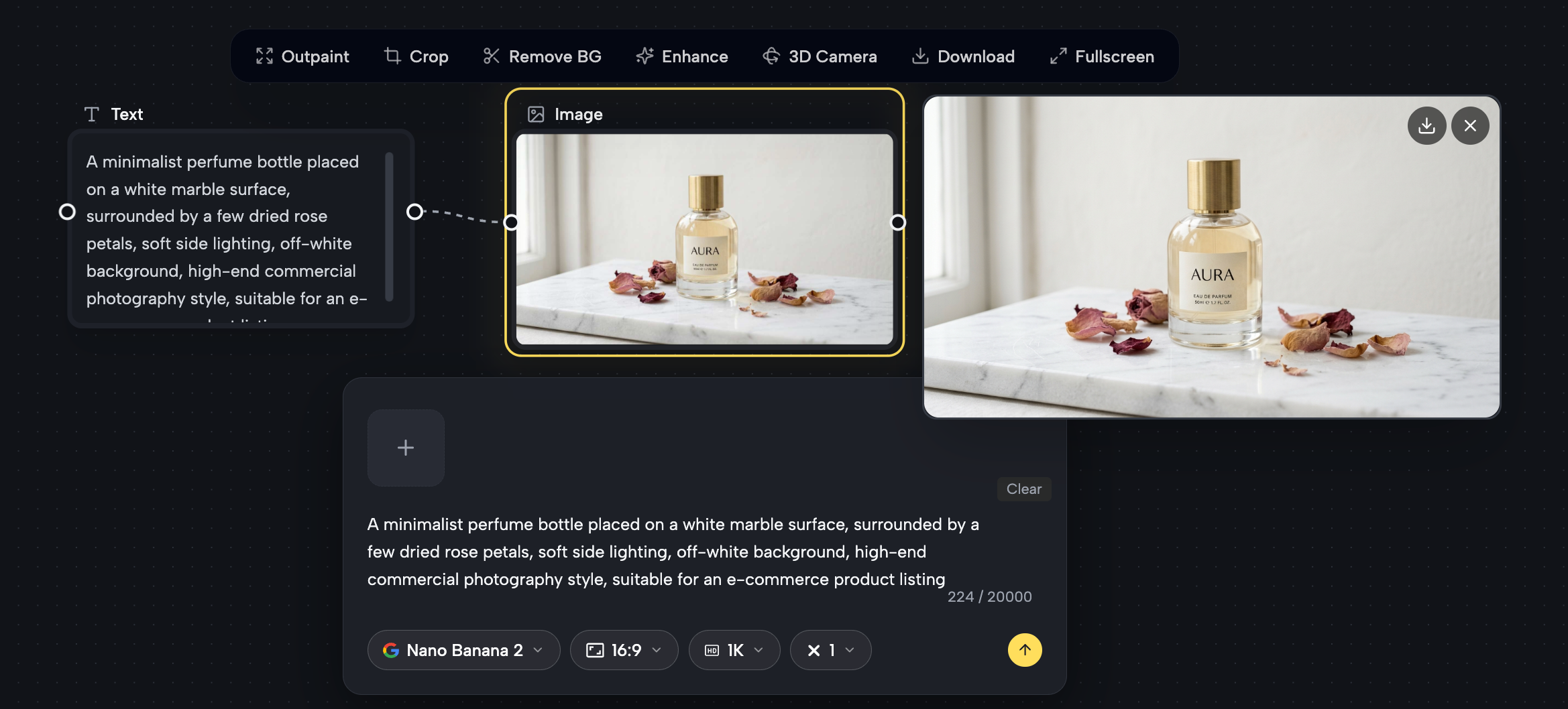 Best for: Anyone without existing assets who only has an idea in mind. E-commerce sellers, content creators, game designers, and anyone who needs to produce visuals fast.