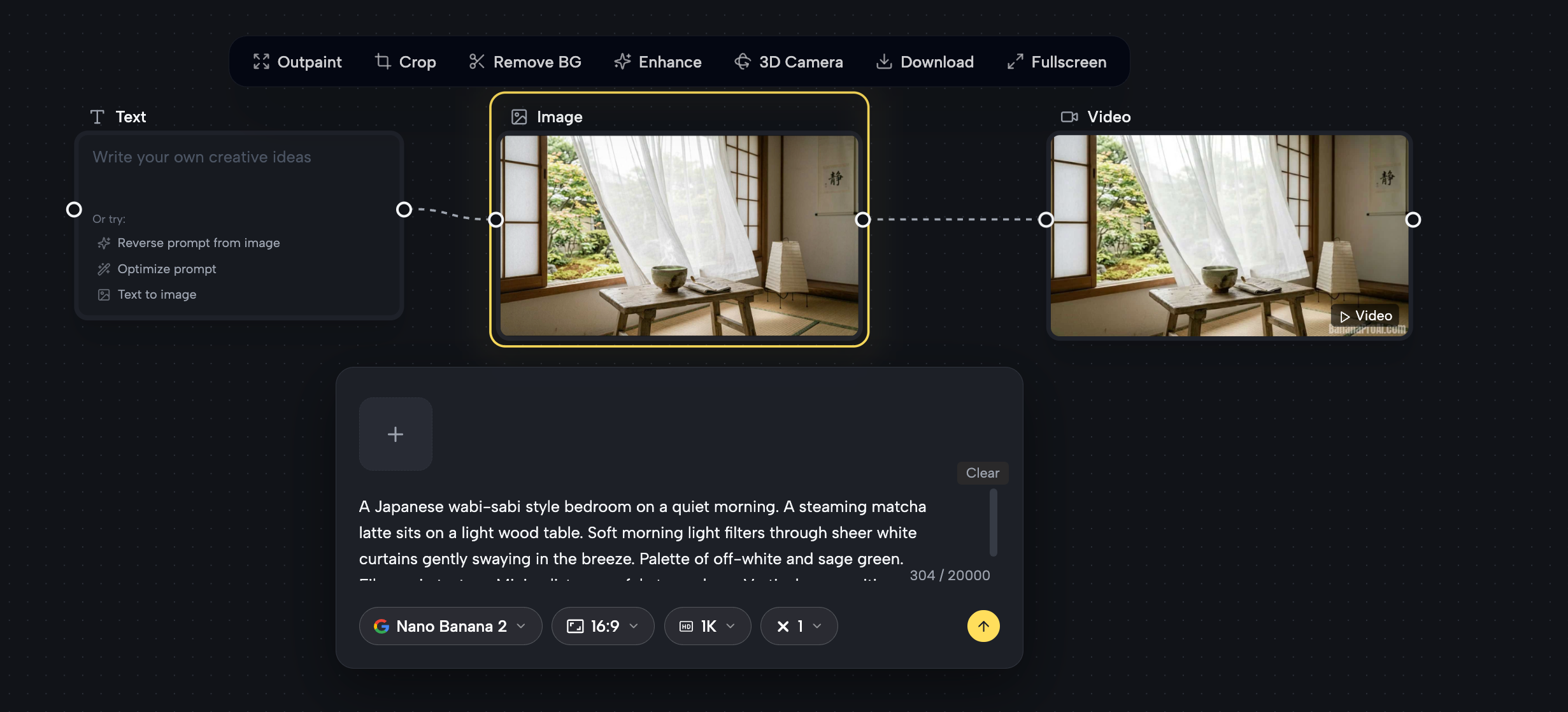 Think of it as an infinitely large whiteboard — on this board, you place different AI functions as "nodes," connect them with lines, and build a complete pipeline from creative idea to finished product. No coding required. No technical knowledge needed. Just drag, drop, and create.