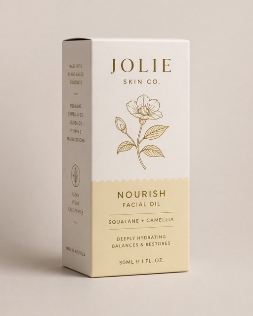 Assemble the dieline into a flawless 3D box with accurate panels, clean folds, undistorted type, and artwork preserved exactly. shoot it upright at a refined ¾ angle in a minimal premium studio setting with a soft neutral background, diffused light, subtle shadows, no props, true colours, matte paperboard texture, and realistic editorial detail