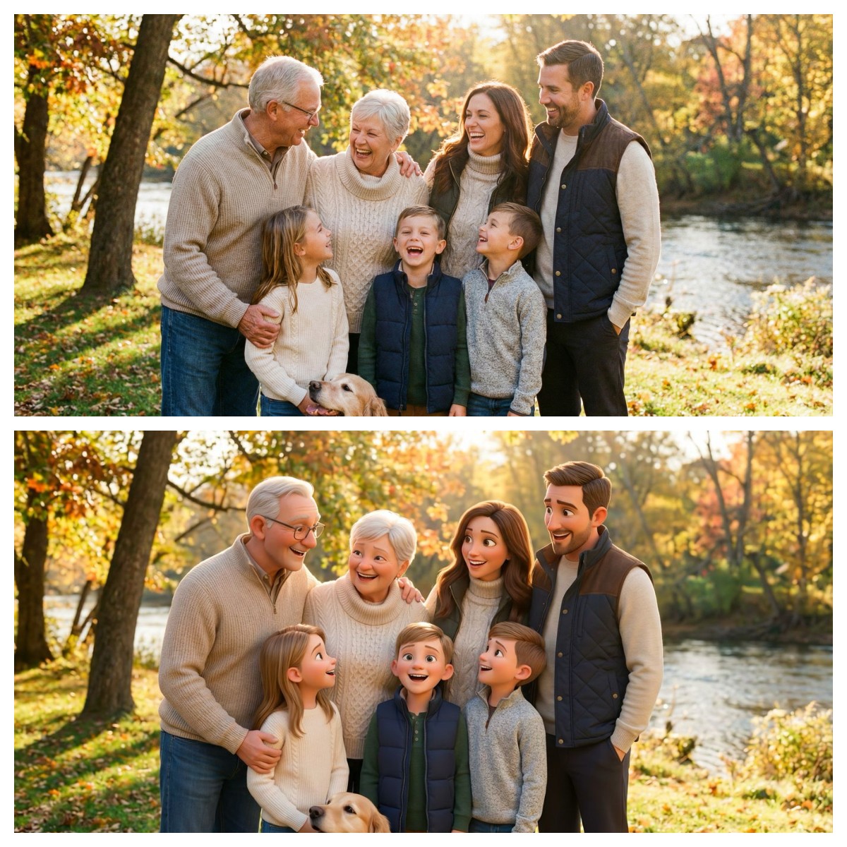 Create truly unforgettable lifelong memories by beautifully turning standard group photos into magical cinematic movie posters using AI Disney Filter. Capture the genuine shared joy of family and close friends as absolutely everyone is stylized into completely cohesive 3D animated characters. AI Disney Filter intelligently maintains the distinctive human features of each individual person, successfully ensuring everyone remains instantly recognizable in their beautiful brand new cartoon form. Perfectly suited for personalized holiday cards, unique anniversary gifts, or incredibly beautiful wall framing, AI Disney Filter effortlessly adds a touch of profound enchantment to your absolute most cherished personal moments. Share the amazing creative magic with your loved ones and entirely reimagine your absolute favorite group pictures forever.