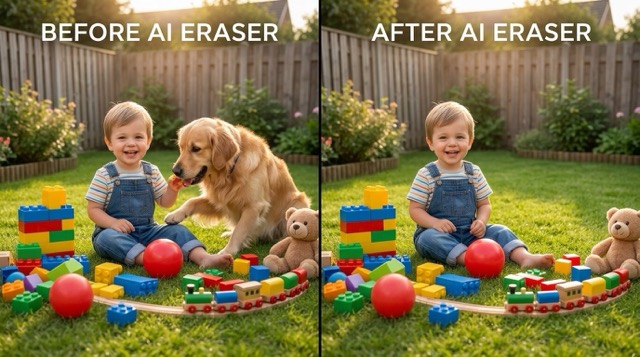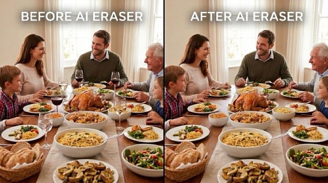 - With AI magic eraser, you can remove people from pictures and keep the final scene natural instead of obviously edited.