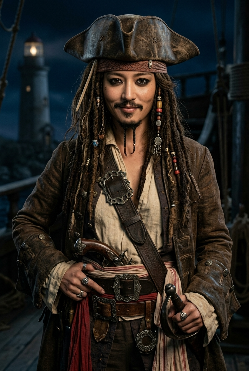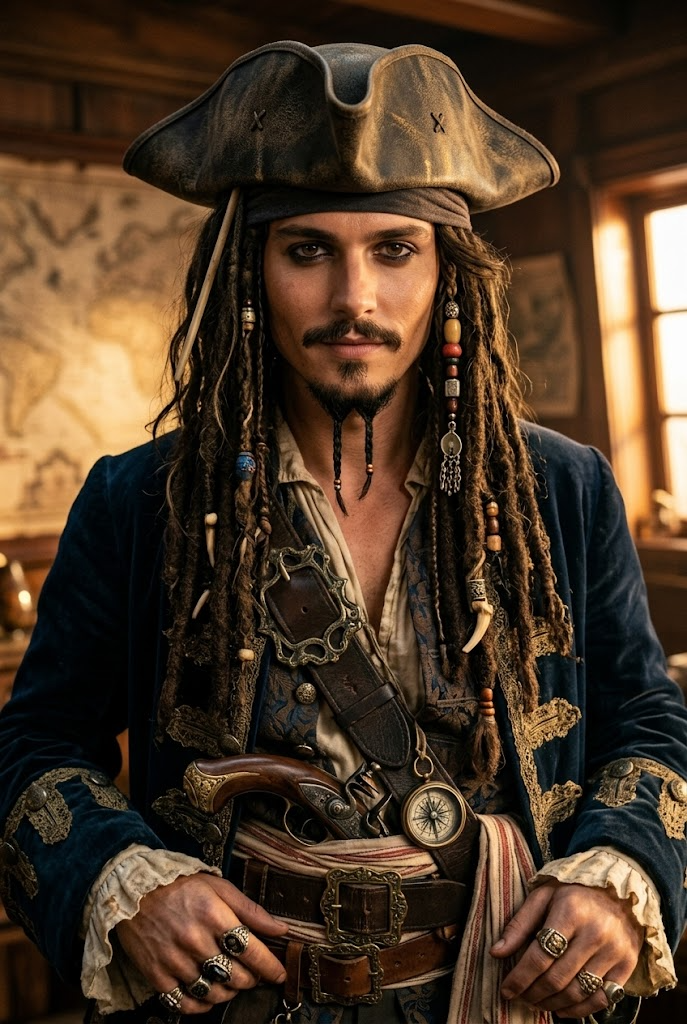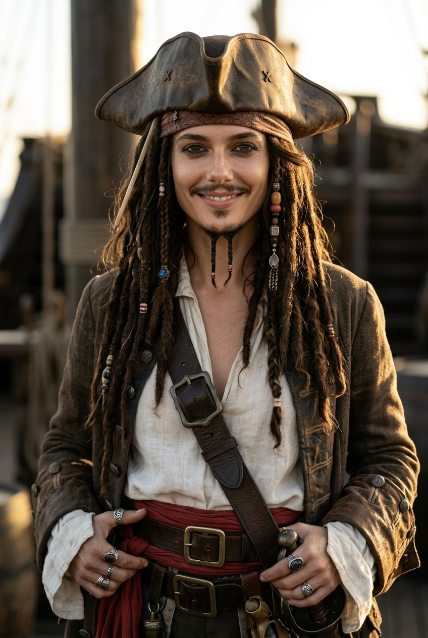 - If you are exploring a captain Jack Sparrow costume aesthetic for a party, event, or fan post, this effect helps you visualize the look immediately.