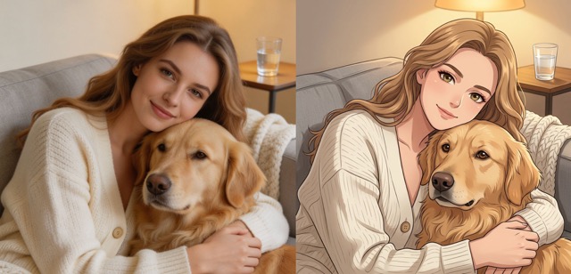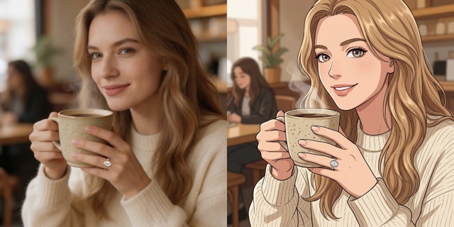 - The tool keeps face shape, hair direction, expression, clothing, and background details consistent while applying anime-style rendering.