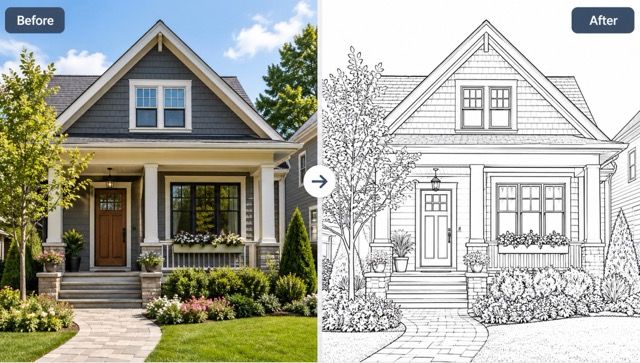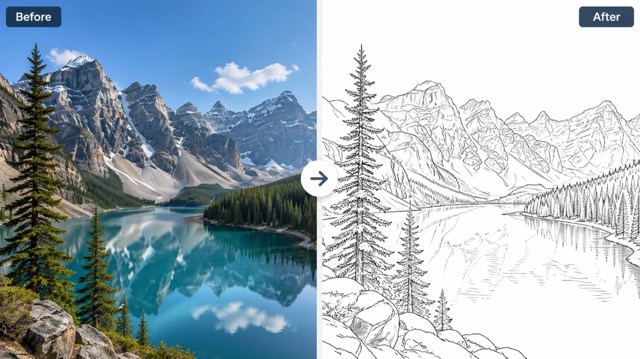 - Converting uploaded photos into clean black-and-white line drawings with AI: Achieve a perfect line drawing from photo in just seconds.