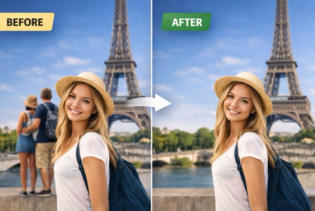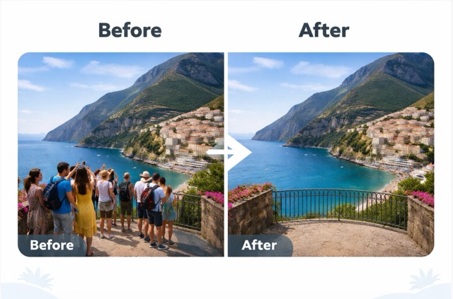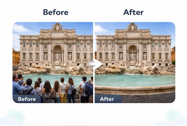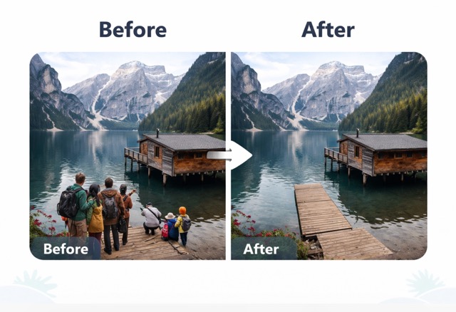 - Natural Composition: Accurately remove passersby while keeping the main subject, composition, and scene natural.