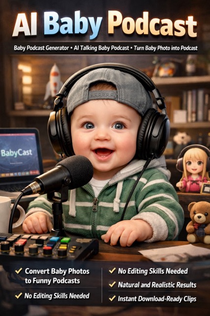 People choose ai baby podcast because it solves a very specific need: it turns ordinary baby photos into funny, shareable, podcast-style content without making the process hard. A useful baby podcast generator should save time, preserve the baby face, make the concept easy to understand, and produce an ai talking baby podcast or baby photo to podcast ai result that feels worth downloading and sharing.