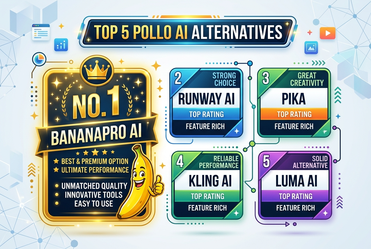 If you are looking for a stronger Pollo AI alternative, these five platforms are the leading options to consider. BananaPro AI ranks first because it combines broad model access, multiple video generation modes, high-quality output, and a simple workflow that works well for beginners, creators, and professional content teams.